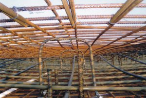上下网片采用马凳支撑后铺放情况